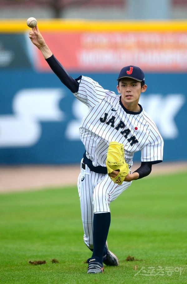1일 부산 기장군 현대차 드림 볼파크에서 제29회 세계청소년야구선수권대회(U-18) 조별리그 미국과 일본의 경기가 열린다. 일본 사사키 로키가 외야에서 몸을 풀고 있다.