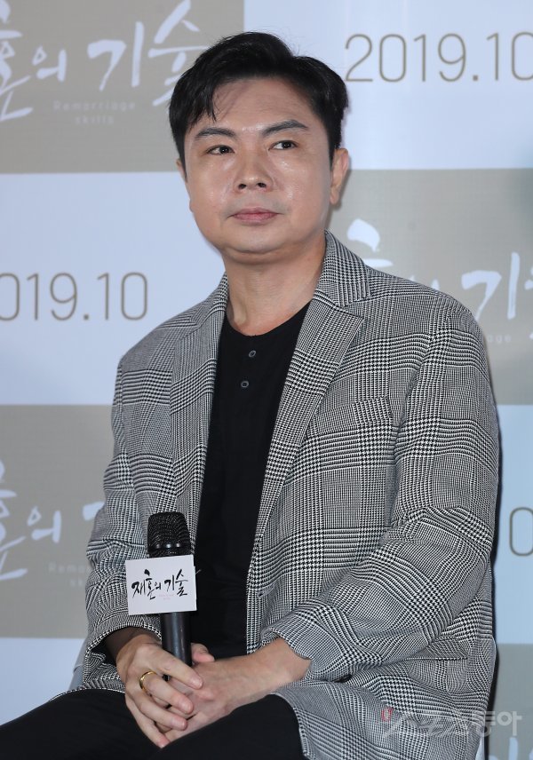 배우 임원희가 3일 서울 용산구 CGV 용산아이파크몰에서 열린 영화 ‘재혼의 기술’ 제작보고회에 참석해 객석을 응시하고 있다.