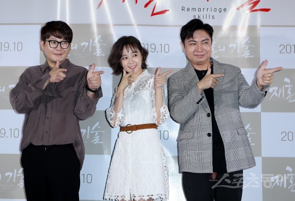 배우 김강현과 박해빛나, 임원희(왼쪽부터)가 3일 서울 용산구 CGV 용산아이파크몰에서 열린 영화 ‘재혼의 기술’ 제작보고회에 참석해 포토타임을 갖고 있다.