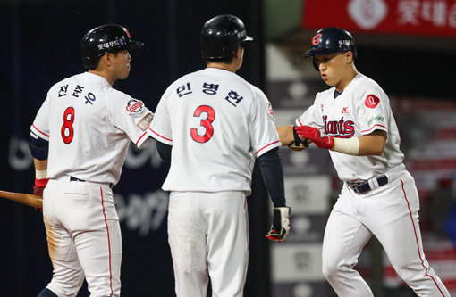 롯데가 3일 성민규 전 시카고 컵스 스카우트를 단장으로 선임했다. KBO리그에 대한 경험이 풍부하지 않다는 점에서 우려의 시선이 나오고 있는 가운데 성 신임 단장은 난국에 빠진 롯데를 구할 수 있을까. 롯데는 마침 이날 사직 삼성전에서 4-5로 패하며 최근 5연패 부진에 빠졌다. 사진은 삼성전에서 6회 2점 아치를 그린 뒤 동료들의 축하를 받고 있는 손아섭(맨 오른쪽). 사진제공|스포츠코리아