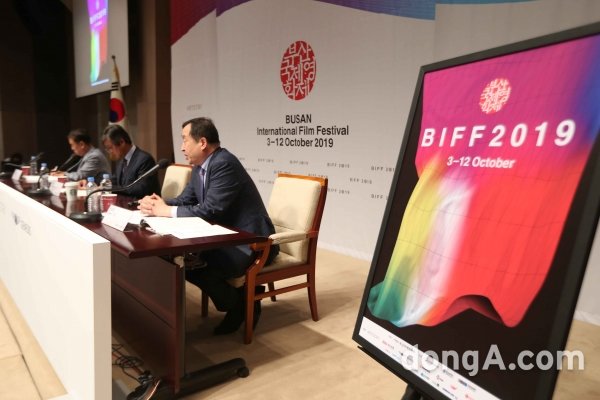 4일 오후 서울 중구 프레스센터 국제회의장에서 열린 제24회 부산국제영화제 기자간담회에서 차승재 아시아필름마켓 공동운영위원장, 이용관 이사장. 전양준 집행위원장이 영화제 소개를 하고 있다.