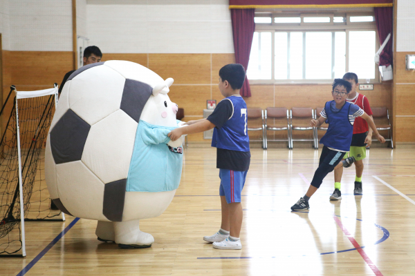 스트레칭을 시작으로 패스, 슈팅, 헤딩 등 기본기 교육을 하고 이후에는 두 팀으로 나눠 축구경기를 진행했다. 마스코트 리카가 홍팀 학생들의 슈팅을 몸을 날려 막는 등 골키퍼로 크게 활약한 덕분에 승리는 청팀이 가져갔다. 학생들은 선수들, 리카와 함께 기념사진을 촬영하며 체육수업을 마무리 지었다.