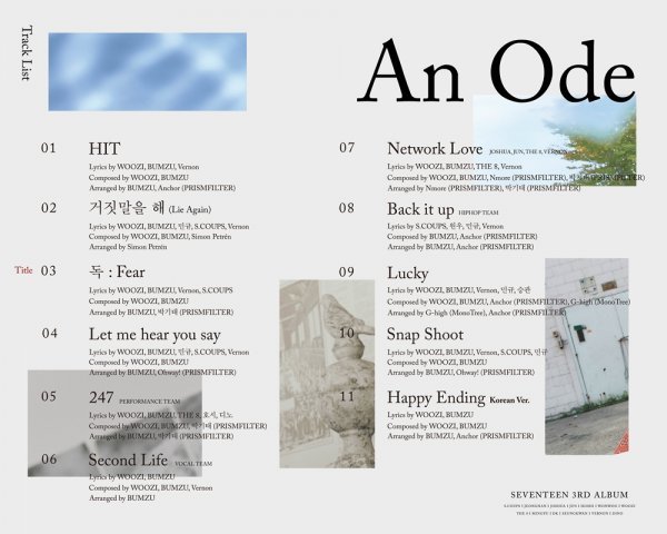 또 세븐틴이 1년 10개월 만에 발매하는 정규 앨범인 만큼 트랙리스트 이미지를 가득 채운 수록곡들 역시 눈길을 끈다.