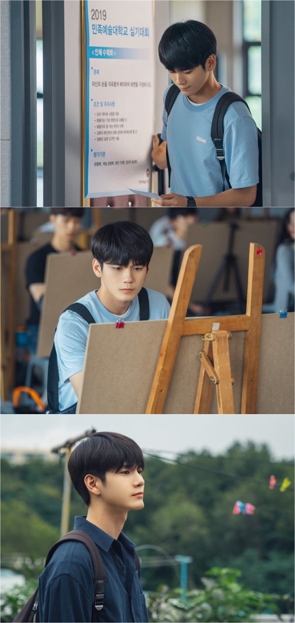 그런 가운데 공개된 사진 속, 미술 실기 대회장에 나타난 준우의 모습이 이목을 집중시킨다. 수험표를 바라보는 미소에는 설렘과 떨림이 뒤섞여있다. 도망치듯 흘러오게 된 ‘천봉고’에서 수빈을 만나 가슴 떨리는 첫사랑을 배우고, 휘영과 부딪히며 폭풍처럼 휘몰아치는 감정을 느끼고, 한결을 만나 재능과 꿈을 찾게 된 준우. 꿈을 향해 한 발짝 성큼 다가선 준우의 용기 있는 도전이 응원을 부른다. 그런가 하면 이어진 사진에서는 그동안 옥탑에서의 추억을 회상하는 그의 눈빛이 반짝인다. 열여덟 여름의 끝자락에서 한 뼘 더 성장한 준우의 모습을 기대하게 한다.