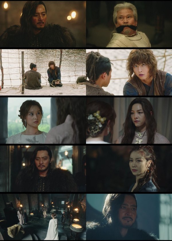 하지만 타곤은 대신전이 일단락되고 탄야(김지원)와 사야(송중기)가 무사하다는 말에도 아사론의 행방을 알 수 없어 여전히 불안해했다. 그때 뭉태(박진)가 입에 재갈을 물린 아사론을 짊어지고 와 바닥에 내려놨고, 타곤은 무언가 말하려는 아사론을 향해 갑자기 칼을 들더니 그대로 목을 베어버렸다. 모두 타곤의 행동에 놀라 얼어붙어 정적만 흐른 이후, 타곤은 뭉태에게 위력을 가하며, 자신이 이그트란 말을 아사론에게 들어 죽을 줄 알면서도 아사론을 자신에게 데리고 온 이유를 물었다.
