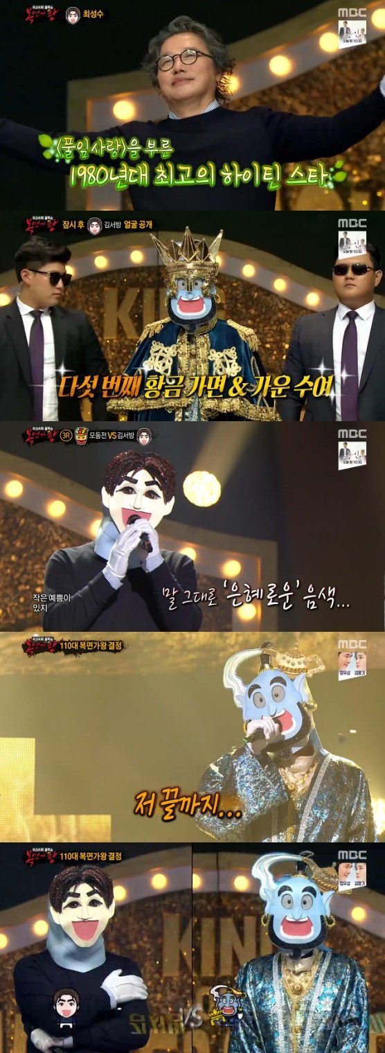 가왕전 결과, '지니'는 5연승에 성공했다. '지니'는 '김서방'을 52대47표로 제쳤다. '지니'는 "매주 내가 가면을 벗기를 원하는 김구라의 소원은 이뤄지지 않았지만 나를 응원하는 분들을 위해 더 노력하겠다"고 소감을 말했다. '지니'와 대결한 '김서방'의 정체는 최성수였다. 최성수는 "너무 행복하다"라고 감격했다.
