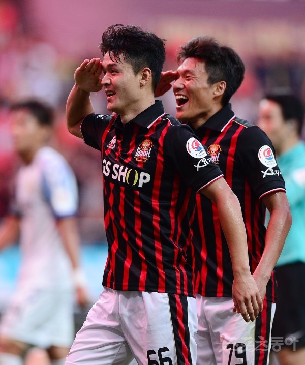 15일 서울월드컵경기장에서 ‘하나원큐 K리그1 2019’ FC 서울과 인천 유나이티드의 경기가 열렸다. FC 서울 주세종이 후반 동점골을 성공시킨 후 이명주(오른쪽)와 세리머니를 하고 있다.