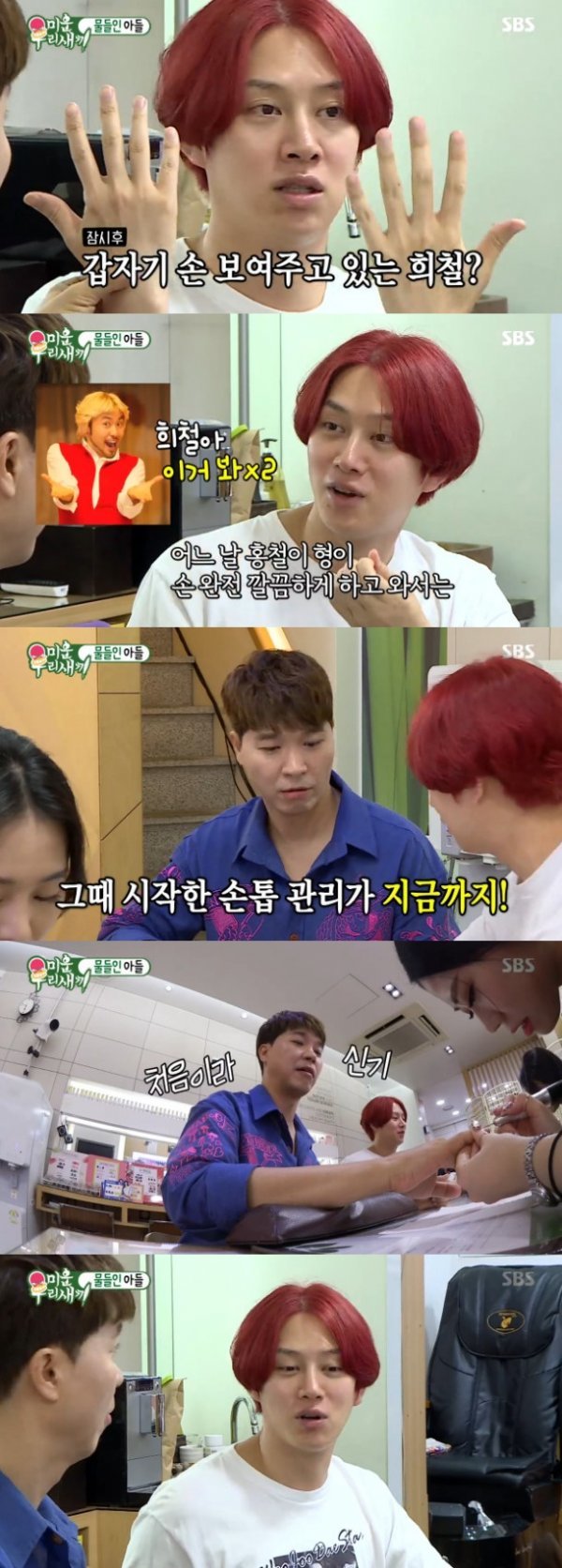 SBS '미운우리새끼' 김희철이 박수홍과 손톱 관리를 받으러 갔다.