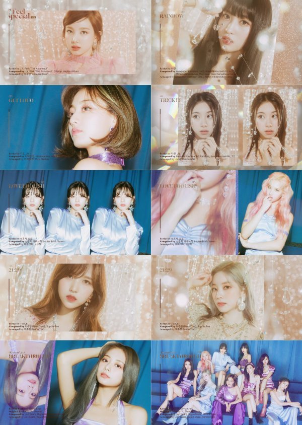 오늘(21일) 0시에는 타이틀곡 \'Feel Special\'을 포함 \'RAINBOW\'(레인보우), \'GET LOUD\'(겟 라우드), \'TRICK IT\'(트릭 잇), \'LOVE FOOLISH\'(러브 풀리시), \'21:29\' 그리고 일본 싱글 5집 \'BREAKTHROUGH\'(브레이크스루)의 한국어 버전까지 총 일곱 트랙의 신곡 하이라이트 영상을 오픈했다.