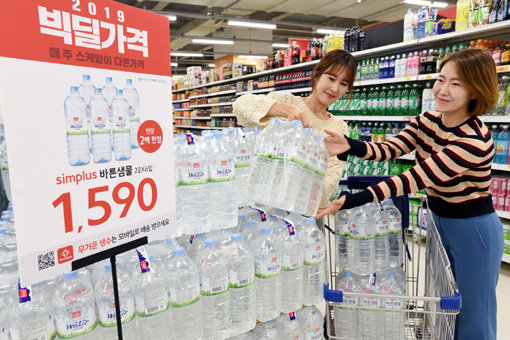 국내 생수 시장 규모는 2014년 6040억 원에서 지난해 1조1524억 원으로 4년 새 2배 가량 성장했다. 무게가 많이 나가는 생수는 집 앞까지 배송해 주는 이커머스의 점유율이 높은 시장인데, 이번에 대형마트들이 이커머스에 내준 주도권을 되찾기 위해 나섰다.