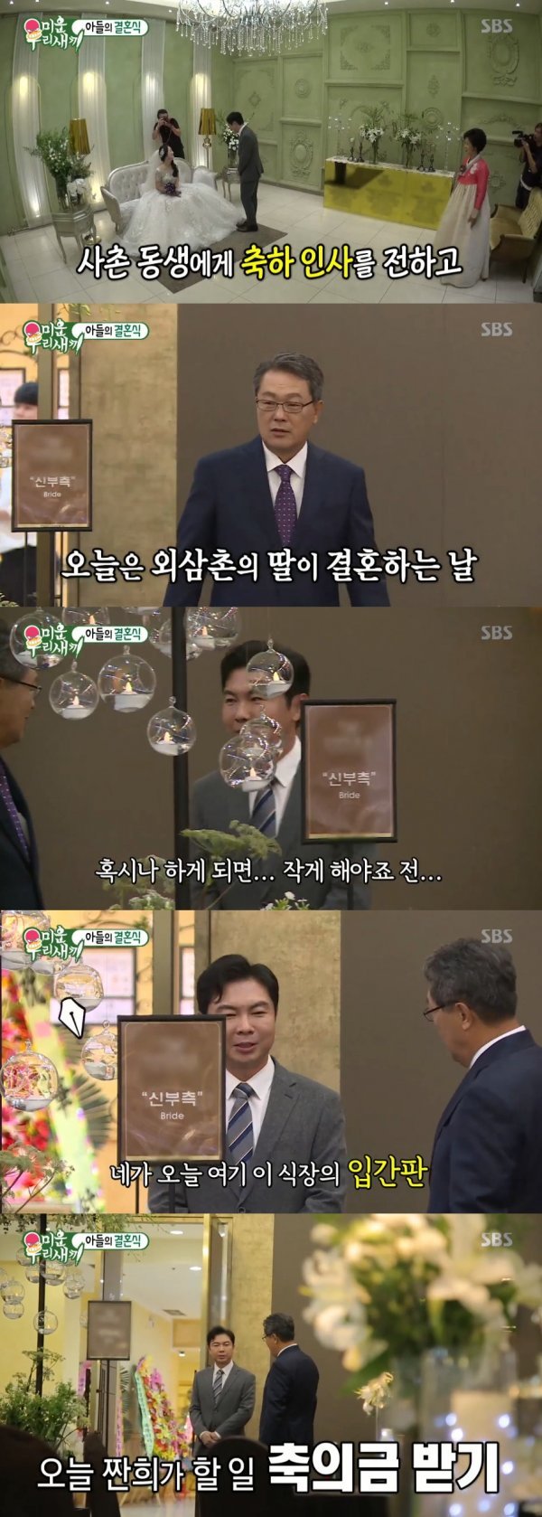 이후 임원희는 외삼촌의 부탁으로 축의금을 받게 됐다. 외삼촌은 “오늘 결혼식의 입간판이다”라고 말해 웃음을 자아냈다.