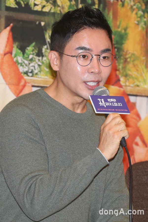 설민석이 23일 오전 서울 마포구 스탠포드호텔에서 열린 tvN 예능 프로그램 \'요즘 책방: 책 읽어드립니다\' 제작발표회에 인사말을 하고 있다.