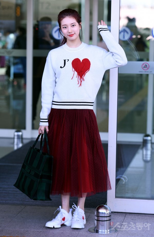 수지가 패션쇼 참석차 23일 인천국제공항을 통해 파리로 출국에 앞서 카메라를 향해 포즈를 취하고 있다.