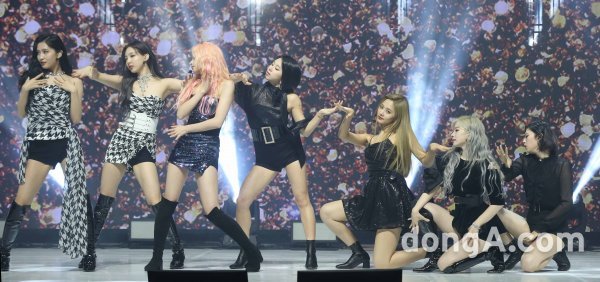 그룹 트와이스가 23일 오후 서울 광진구 예스24라이브홀에서 열린 미니 8집 앨범 \'필 스페셜\' 발매 쇼케이스에서 새로운 무대를 선보이고 있다.