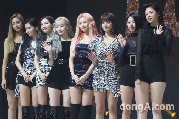 그룹 트와이스가 23일 오후 서울 광진구 예스24라이브홀에서 열린 미니 8집 앨범 \'필 스페셜\' 발매 쇼케이스에서 포토타임을 하고 있다.