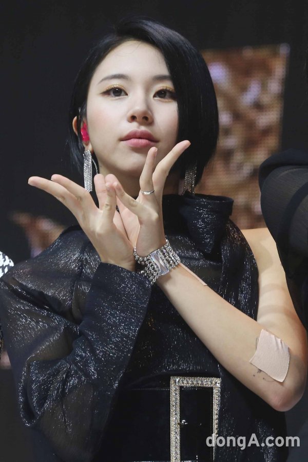 그룹 트와이스의 채영이 23일 오후 서울 광진구 예스24라이브홀에서 열린 미니 8집 앨범 \'필 스페셜\' 발매 쇼케이스에서 포토타임을 하고 있다.
