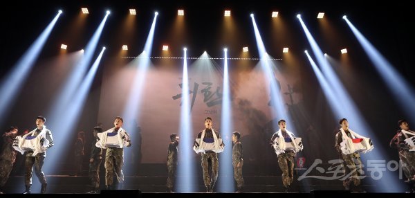 24일 서울 용산구 한남동 블루스퀘어 아이마켓홀에서 열린 2019 육군 창작 뮤지컬 ‘귀환’ 프레스콜에서 배우들이 멋진 무대를 펼치고 있다.