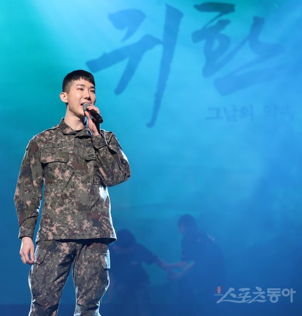 조권이 24일 서울 용산구 한남동 블루스퀘어 아이마켓홀에서 열린 2019 육군 창작 뮤지컬 ‘귀환’ 프레스콜에서 멋진 무대를 펼치고 있다.
