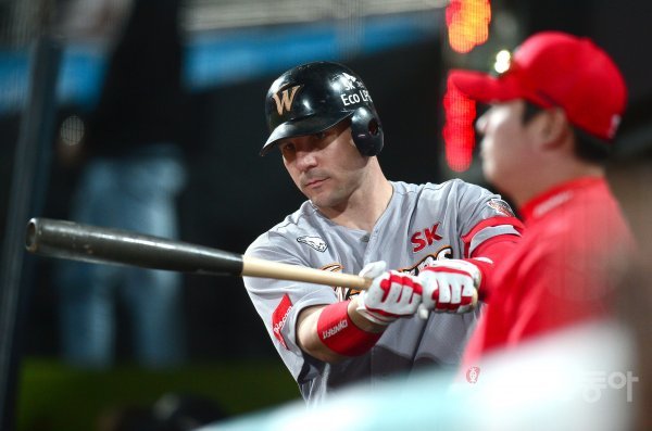 24일 수원KT위즈파크에서 ‘2019 신한은행 MY CAR KBO리그’ SK 와이번스와 KT 위즈 경기가 열렸다. 5회초 SK 로맥이 배트를 돌려보고 있다.