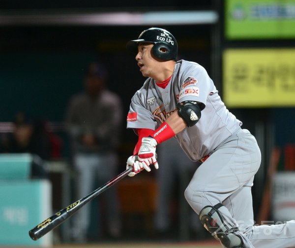 24일 수원KT위즈파크에서 ‘2019 신한은행 MY CAR KBO리그’ SK 와이번스와 KT 위즈 경기가 열렸다. 4회초 1사 2,3루 SK 김강민이 1타점 내야 땅볼을 치고 있다.