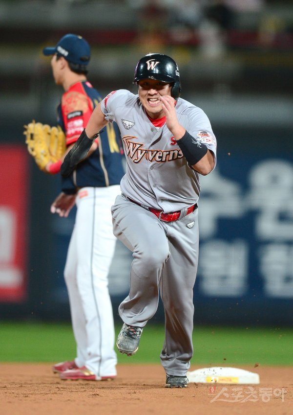 24일 수원KT위즈파크에서 ‘2019 신한은행 MY CAR KBO리그’ SK 와이번스와 KT 위즈 경기가 열렸다. 4회초 무사 1,2루 SK 외야플라이 아웃 때 2루주자 최정이 태그업 시도해 3루로 달리고 있다.