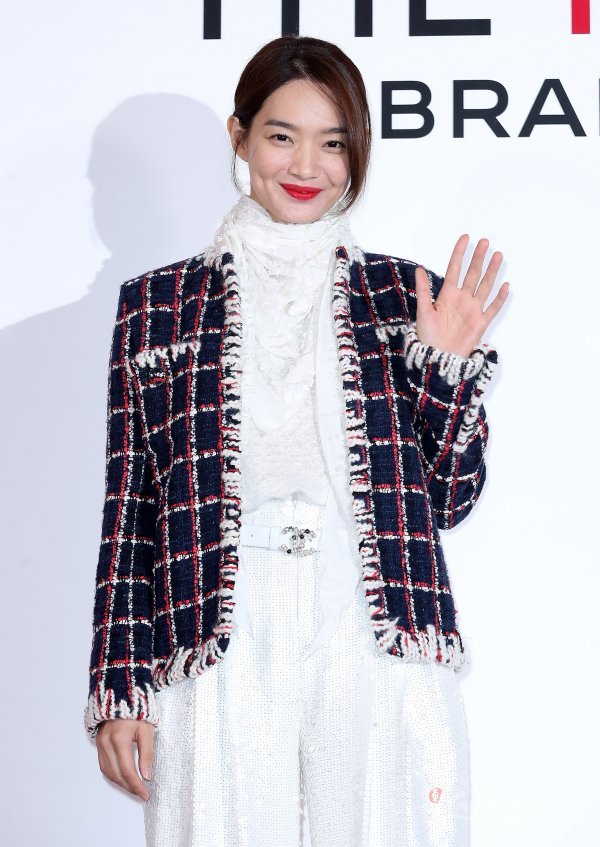 배우 신민아가 24일 서울 강남역 인근 한 뷰티 매장에서 열린 한 뷰티 브랜드의 팝업 이벤트 포토월 행사에서 포즈를 취하고 있다.