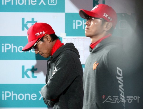 24일 수원KT위즈파크에서 ‘2019 신한은행 MY CAR KBO리그’ SK 와이번스와 KT 위즈 경기가 열렸다. 3-2로 앞선 8회말 무사 만루 상황이 되자 SK 염경엽 감독이 생각을 하고 있다.