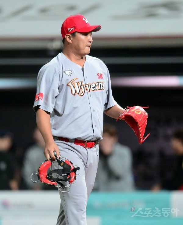 8회말 무사 만루 KT 유한준에게 역전 2타점 적시타를 허용한 SK 정영일이 아쉬워하고 있다.