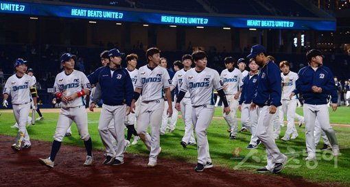 24일 경남 창원NC파크에서 ‘2019 신한은행 MY CAR KBO리그’ NC 다이노스와 두산 베어스의 경기가 열렸다. NC가 연장전 끝에 두산과 7-7 무승부를 기록한 뒤 선수들이 더그아웃으로 향하고 있다. NC는 남은 경기 상관없이 와일드카드 결정전에 진출했다. 창원|김민성 기자 marineboy@donga.com