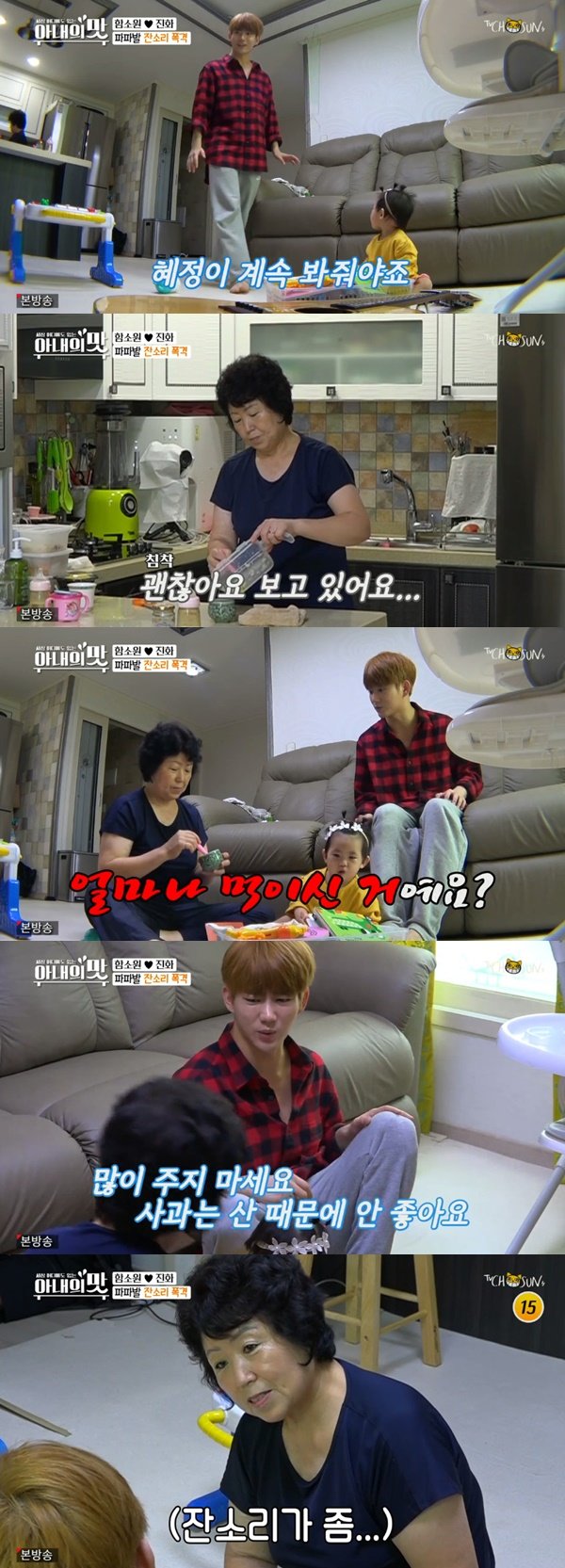 24일 오후 방송된 TV조선 예능프로그램 ‘아내의 맛’에서는 진화와 육아 도우미가 육아 방식에 대해 갈등을 빚는 장면이 그려졌다.