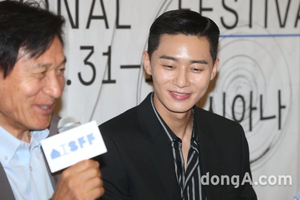 배우 안성기(왼쪽)와 박서준이 25일 오전 서울 중구 산 다미아노에서 열린 제17회 아시아나국제단편영화제(The 17th Asiana International Short Film Festival) 공식 기자회견에서 참석해 인사말을 하고 있다.