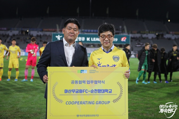 프로축구 K리그2 아산무궁화축구단(구단주 오세현)이 순천향대학교와 ‘공동협력 업무협약’을 체결했다.