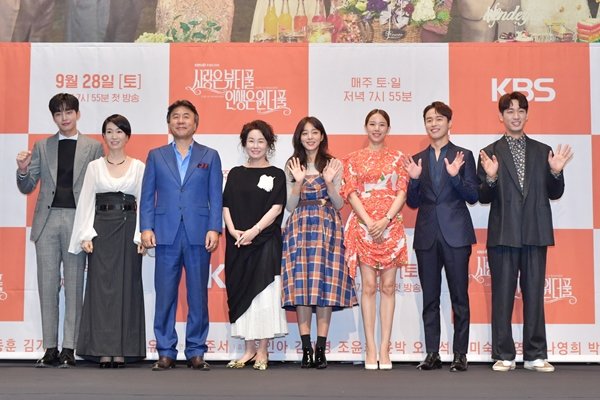 25일 오후 서울시 구로구 라마다 서울 신도림 호텔 서울 2층 그랜드볼룸에서는 KBS2 새 주말드라마 ‘사랑은 뷰티풀 인생은 원더풀’(이하 ‘사풀인풀’) 제작발표회가 개최됐다. 이날 제작발표회에는 배우 설인아, 김재영, 조윤희, 윤박, 오민석, 김미숙, 박영규, 나영희 그리고 연출을 맡은 한준서 감독이 참석했다.