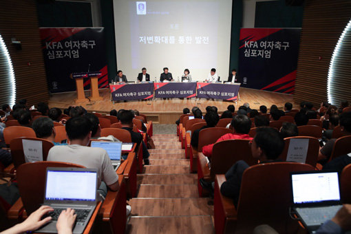 한국 여자축구는 위기다. 2019프랑스여자월드컵에서 3전 전패를 했다고 해서 나온 평가가 아니다. 국내 시스템 전반에 경고음이 들린다. 축구 저변을 확인할 수 있는 등록선수 및 팀 수 감소, 그리고 장기 플랜 부재 등이 부진한 국제경기 성적과 맞물리면서 위기의식은 고조됐다. 이에 대한축구협회(KFA)는 25일 서울 종로구 아산정책연구원에서 ‘여자축구 심포지엄’을 열고 각계의 의견을 들었다. 이 자리에서 대한축구협회 정몽규 회장은 “이제 더 이상 투지를 앞세우는 시대는 지났다. 우리 여자축구도 근본적인 변화가 필요하다”고 말했다.