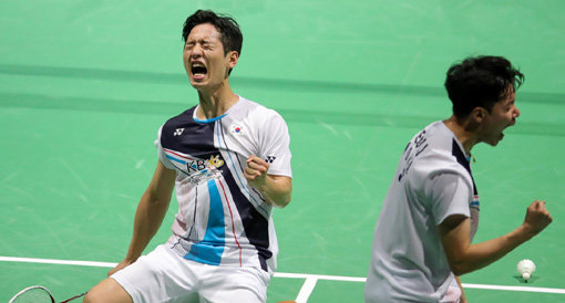 2020도쿄올림픽 메달에 도전하는 한국 셔틀콕 기대주 서승재(원광대학교)-최솔규(요넥스) 조가 이용대(요넥스)-김기정(삼성전기) 조를 꺾고 코리아오픈 16강에 진출했다.