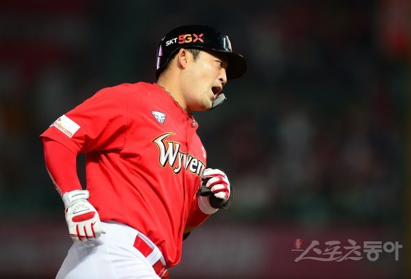 25일 인천 SK행복드림구장에서 ‘2019 신한은행 MY CAR KBO리그’ 삼성 라이온즈와 SK 와이번스 경기가 열렸다. 4회말 무사 SK 정의윤이 좌월 솔로 홈런을 날리고 그라운드를 돌며 하이파이브 하고 있다.