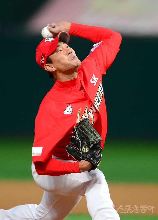 25일 인천 SK행복드림구장에서 ‘2019 신한은행 MY CAR KBO리그’ 삼성 라이온즈와 SK 와이번스 경기가 열렸다. 선발 투수로 등판한 SK 김광현이 역투하고 있다.