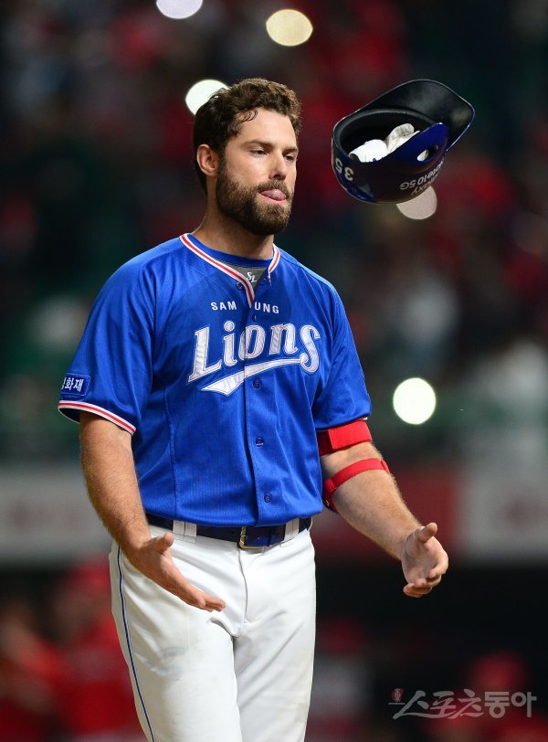 25일 인천 SK행복드림구장에서 ‘2019 신한은행 MY CAR KBO리그’ 삼성 라이온즈와 SK 와이번스 경기가 열렸다. 8회초 2사 3루 삼성 윌리엄슨이 좌익수 직선타로 아웃된 후 아쉬워하고 있다.