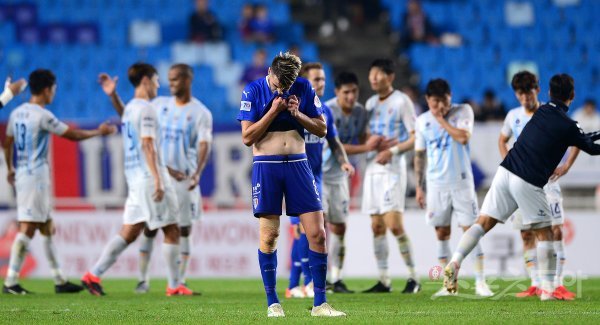 25일 수원월드컵경기장에서 열린 ‘하나원큐 K리그1 2019’ 수원 삼성과 울산 현대의 경기에서 울산 현대가 2-0 승리를 거뒀다. 경기 후 수원 삼성 안토니스가 고개를 떨구고 있다.