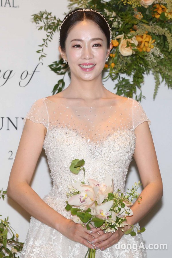박은영 아나운서가 27일 오후 서울 강남구 그랜드 인터컨티넨탈 호텔에서 열린 결혼식에 앞서 포토타임을 하고 있다.
