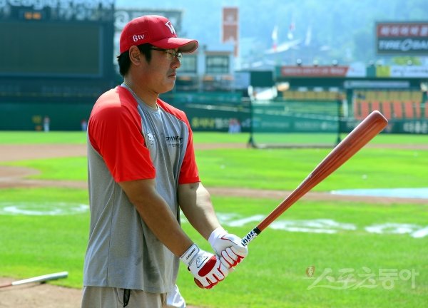 29일 대전 한화생명이글스파크에서 ‘2019 신한은행 MY CAR KBO리그’ 한화 이글스와 SK 와이번스의 경기가 열린다. 경기 전 SK 박정권이 훈련에 나서고 있다.