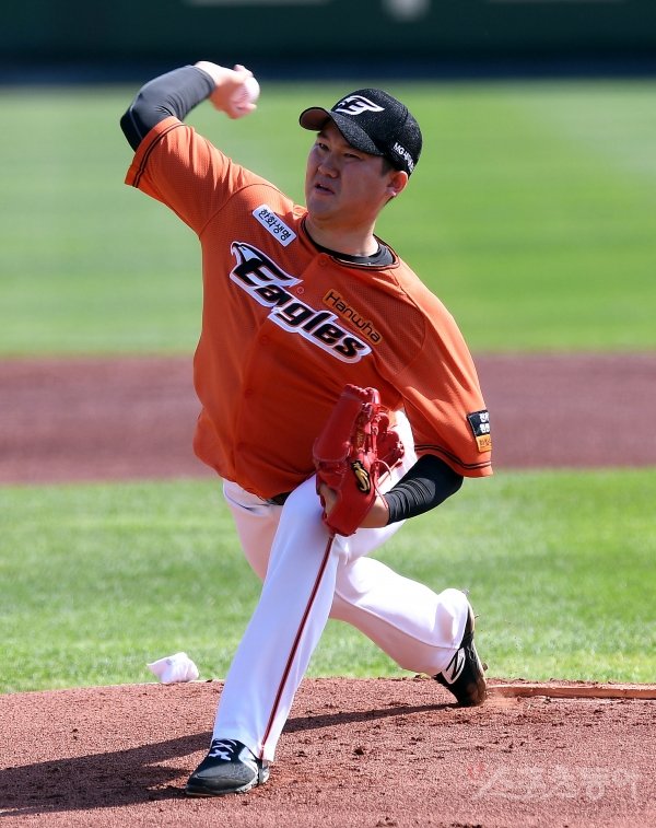 29일 대전 한화생명이글스파크에서 ‘2019 신한은행 MY CAR KBO리그’ 한화 이글스와 SK 와이번스의 경기가 열렸다. 한화 선발투수 김진영이 힘차게 볼을 던지고 있다.
