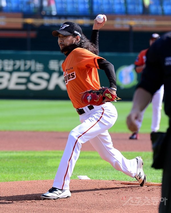 29일 대전 한화생명이글스파크에서 ‘2019 신한은행 MY CAR KBO리그’ 한화 이글스와 SK 와이번스의 경기가 열렸다. 경기에 앞서 배우 조찬형이 시구를 던지고 있다.