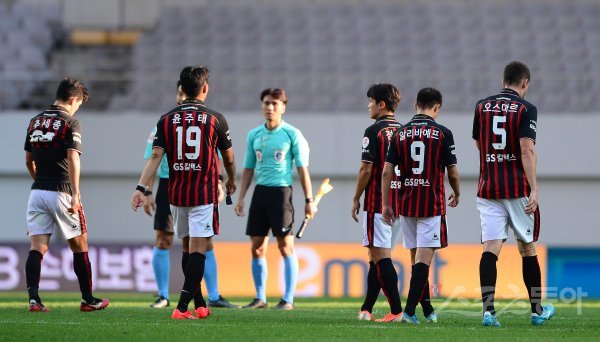 경기 후 FC 서울 선수들이 아쉬워하고 있다.