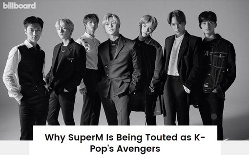 그룹 샤이니의 태민, 엑소 백현과 카이, NCT 127 태용과 마크, 중국그룹 WayV 루카스와 텐 등 7명이 뭉친 SuperM(슈퍼엠)에 대해 빌보드가 ‘케이팝 어벤져스’라 칭했다. 최근 빌보드는 “SuperM은 최근 K팝에서 가장 인상적인, 블록버스트급 라인업이다”며 “미국시장에서 K팝의 주류를 이끌려는 SM엔터테인먼트의 시도”라고 밝혔다. SuperM은 10월4일 첫 미니앨범 ‘SuperM’을 전 세계에 공개한다. 한편 빌보드와 미국 경제매체 포브스는 그룹 몬스타엑스의 빠른 성장세를 다룬 보도도 내놨다.