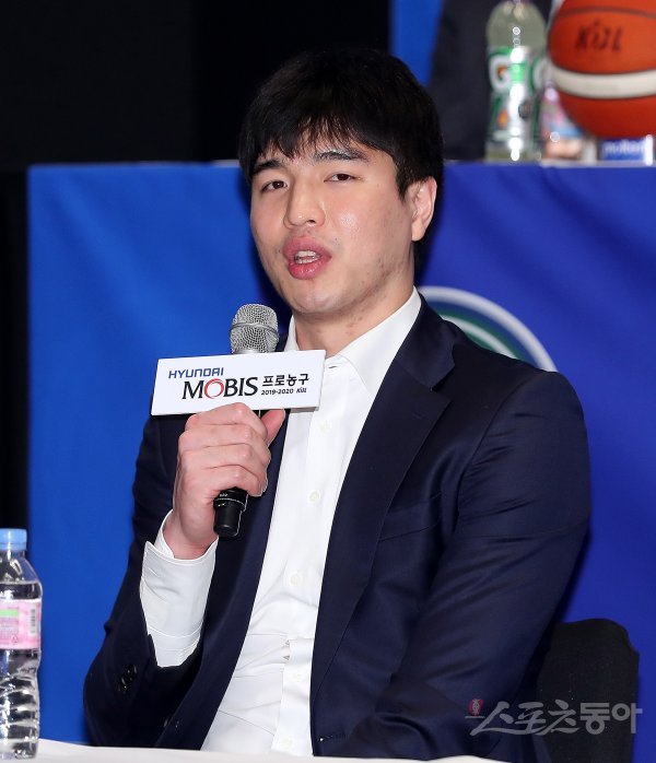 1일 서울 서초구 반포동 JW 메리어트호텔 그랜드볼룸에서 2019-2010 KBL 미디어데이가 열렸다. 원주 DB 김종규가 출사표를 던지고 있다.