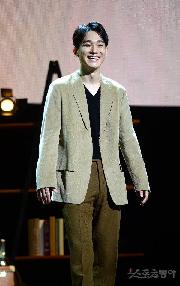 엑소 첸이 1일 서울 광진구 예스24 라이브홀에서 가진 두 번째 미니앨범 ‘사랑하는 그대에게 (Dear my dear)’ 발매 음감회에서 포토타임을 하고 있다.