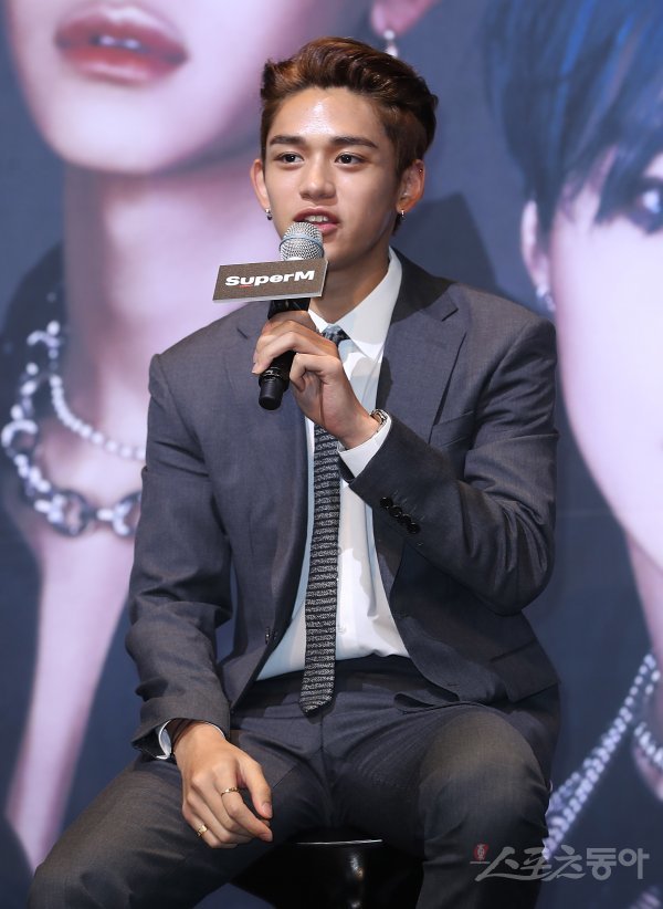 슈퍼엠(SuperM)의 루카스가 2일 서울 용산 드래곤시티 그랜드볼룸 백두홀에서 열린 월드와이드 론칭 기념 기자간담회에서 인사말을 하고 있다.