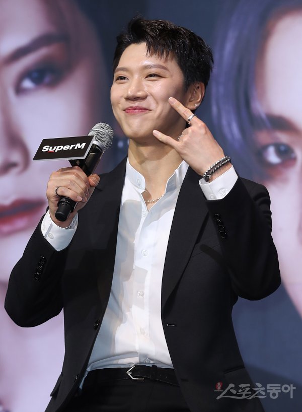 슈퍼엠(SuperM)의 텐이 2일 서울 용산 드래곤시티 그랜드볼룸 백두홀에서 열린 월드와이드 론칭 기념 기자간담회에서 인사말을 하고 있다.