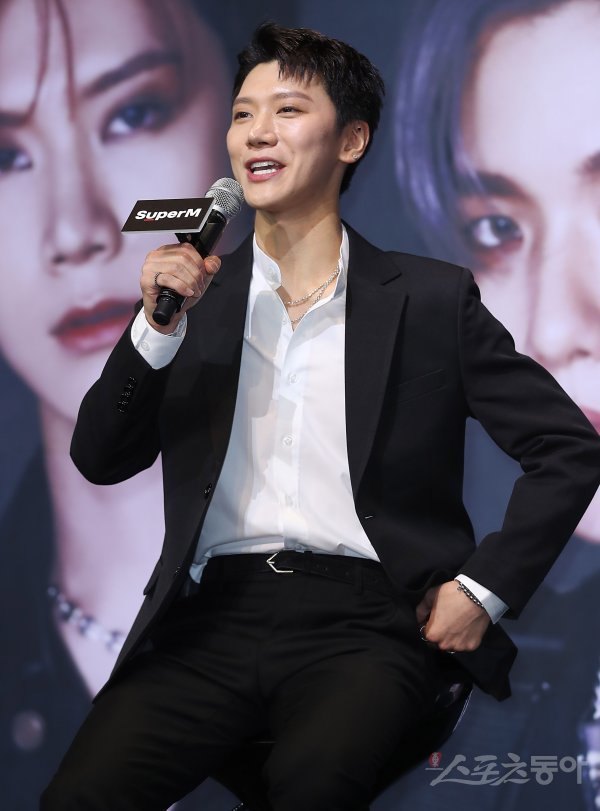 슈퍼엠(SuperM)의 텐이 2일 서울 용산 드래곤시티 그랜드볼룸 백두홀에서 열린 월드와이드 론칭 기념 기자간담회에서 인사말을 하고 있다.